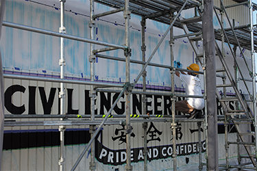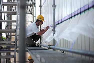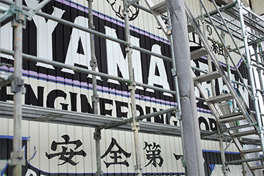 サインペイントをする際の足場設置は協力業者の足場屋にお願いして、ペイントは栗山組社員や自分も手伝う事もありました。経過や完成時にはフォトグラファーの友人が写真を撮ってくれたり、同時期に出張に来て頂いた本ウェブサイト製作者のNATSWORKS 原田さんにも動画撮影を行ってもらったりと、皆んなの協力を得て作り上げる事ができました。本当に感謝しています。