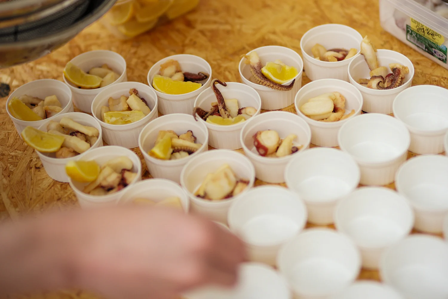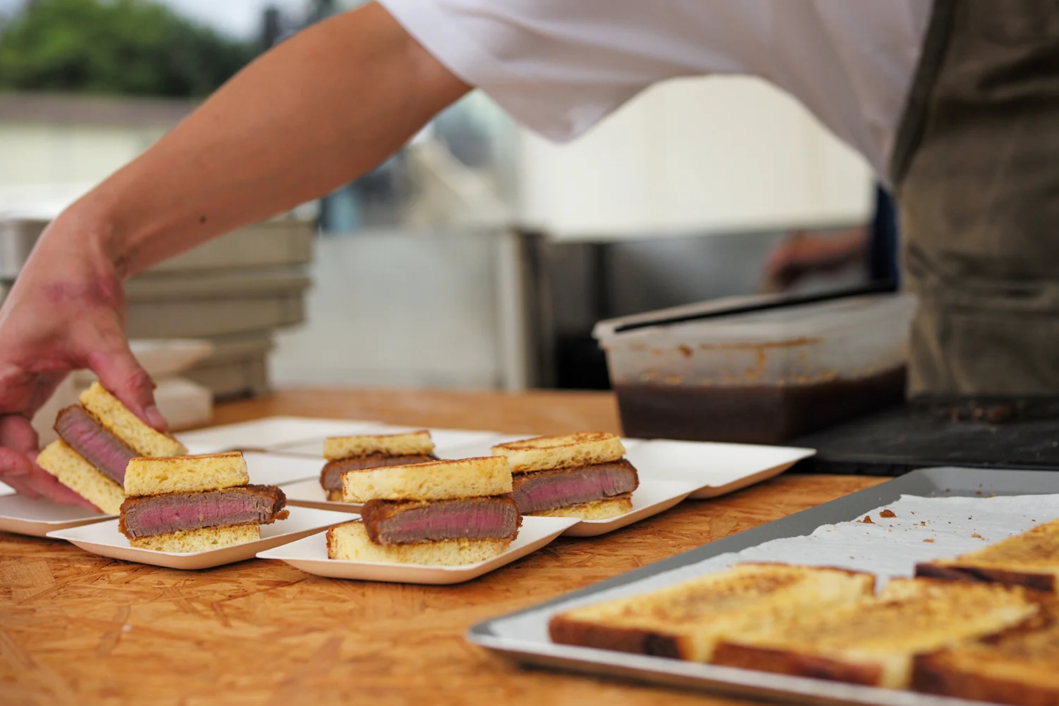 ムール貝と北海道厚岸産カキのパスタ、すっぽんの出汁に松茸とフカヒレのあんをかけたラーメン、「みつき」さんと「FARO trattoria」さんのスペシャルコラボのヒレカツサンドなど、海と山の旬の食材がふんだんに使われた絶品料理を食べて飲んで大満足。そして焼肉・ピザコーナーでは地元(米子・境港)で評判の「焼肉ヤマト」さんのおいしそうなお肉が網の上でジュージューと音を立て、香ばしい香りが会場を包み込み、楽しく心満たされるひとときを過ごしました!