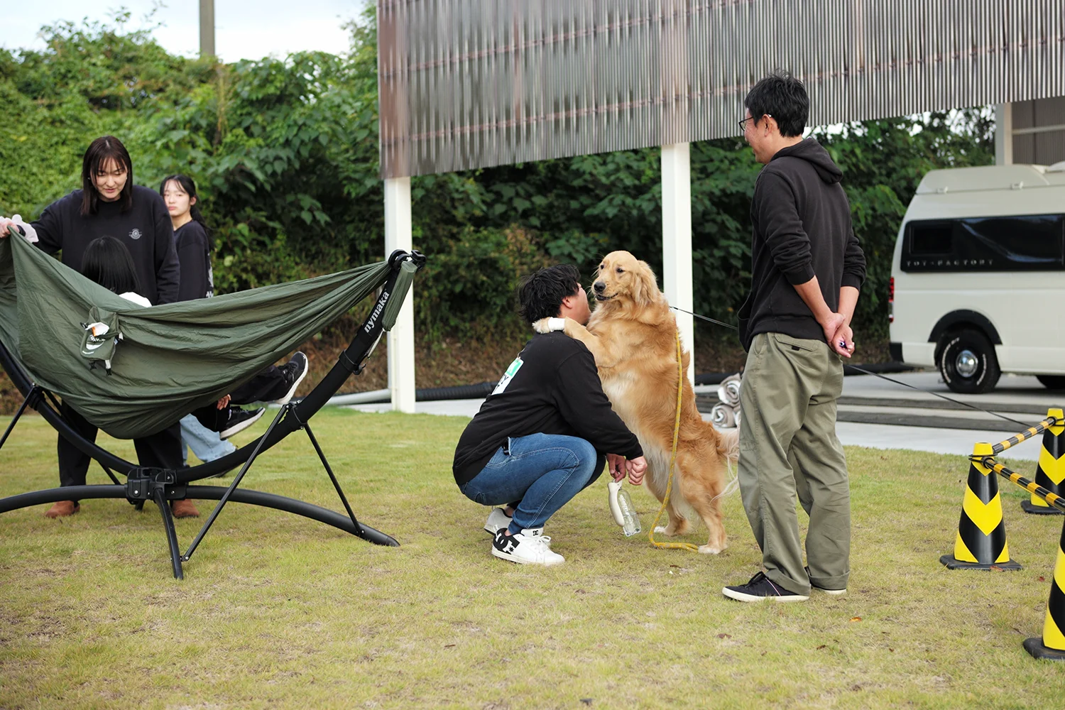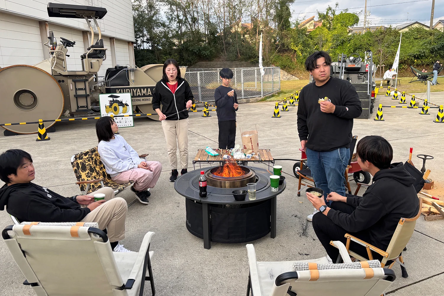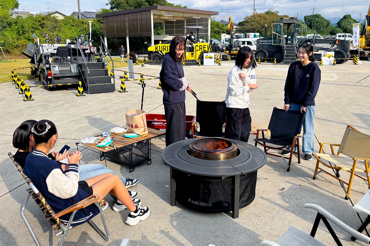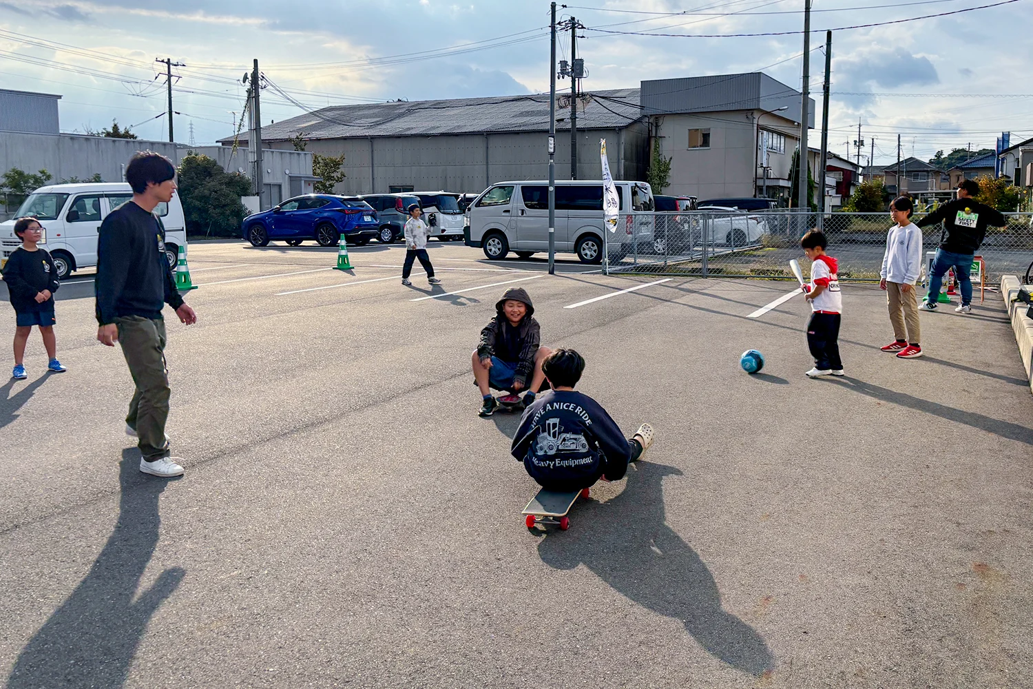 子ども達は焚火コーナーで薪割りをしたりマシュマロを焼いたり、芝生の上を走ってワンちゃんと触れ合ったり、建設機械に嬉しそうに体験乗車したり、サッカーや野球、スケートボードに大人も一緒に加わって楽しんでいました!