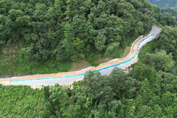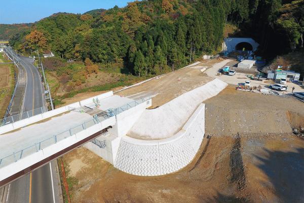 - 工事概要 法面吹付工 擁壁工 アスファルト舗装工 排水構造物工 防護柵工