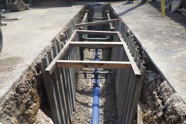 - 工事概要 開削工 管布設工 鋼製さや管推進工 マンホール設置工 付帯工