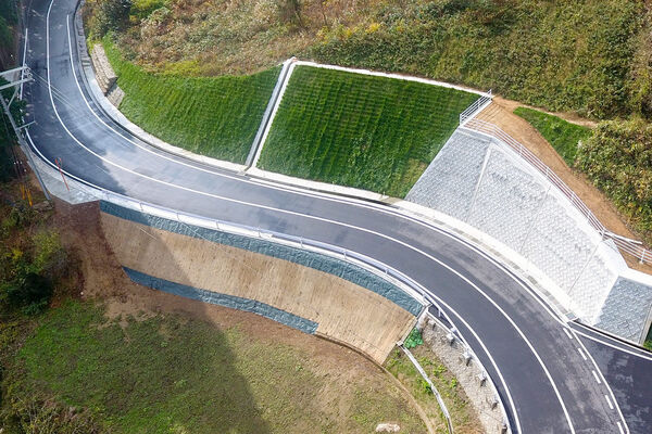 - 工事概要 道路土工 軽量盛土工 法面保護工 鉄筋挿入工 仮設工