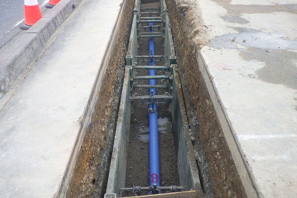 - 工事概要 開削型シールド工 強化プラスチック複合管布設工 マンホール設置工 アスファルト舗装工