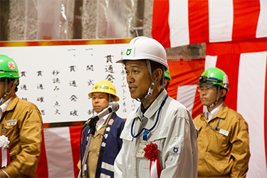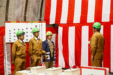 貫通点へ移動した後、貫通点の清めが行われ、地元関係者、工事関係者による通り初めが行われました。
