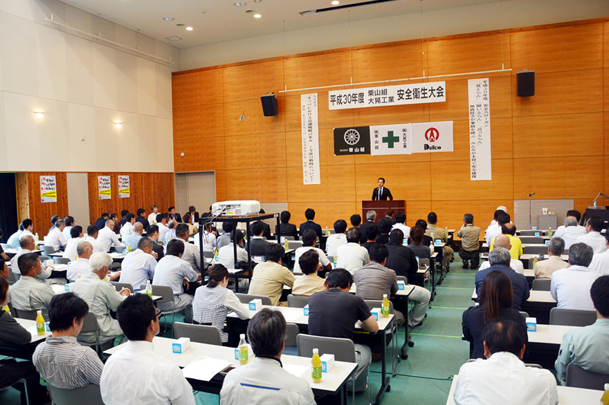 栗山組(栗山和大社長)・大晃工業(高田重利社長)と両社安全協力会による「2018年度安全衛生大会」が、28日(土)午後2時から県立福祉人材研修センターで開催しました。