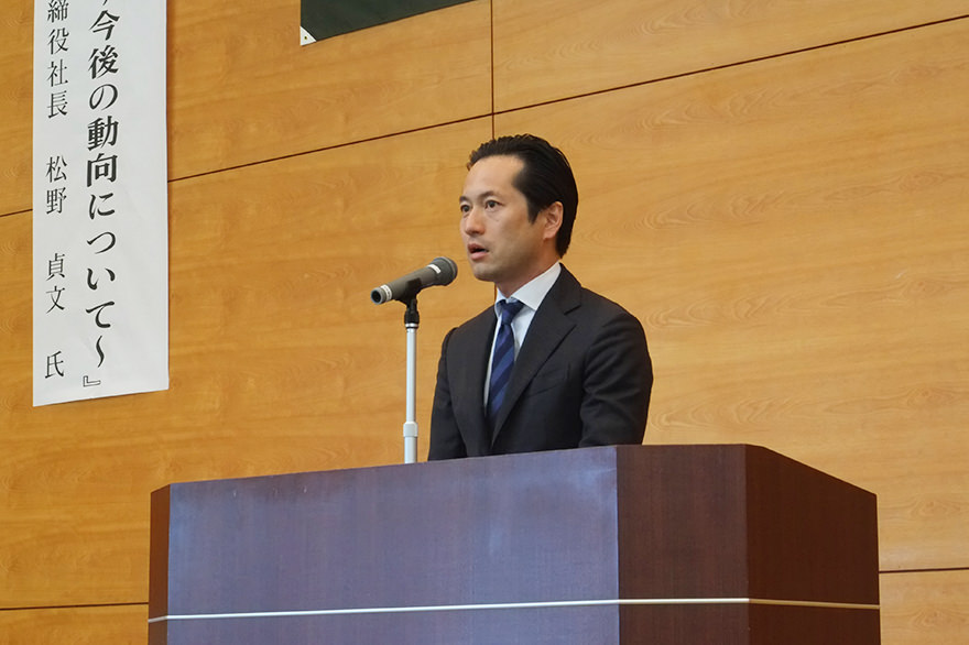 最後に、総合食材流通業《まつの》の松野貞文社長による「まつのにおける流通戦略の歩み~今後の動向について~」特別講演が行われ、食材流通業界の動向について聞いた。